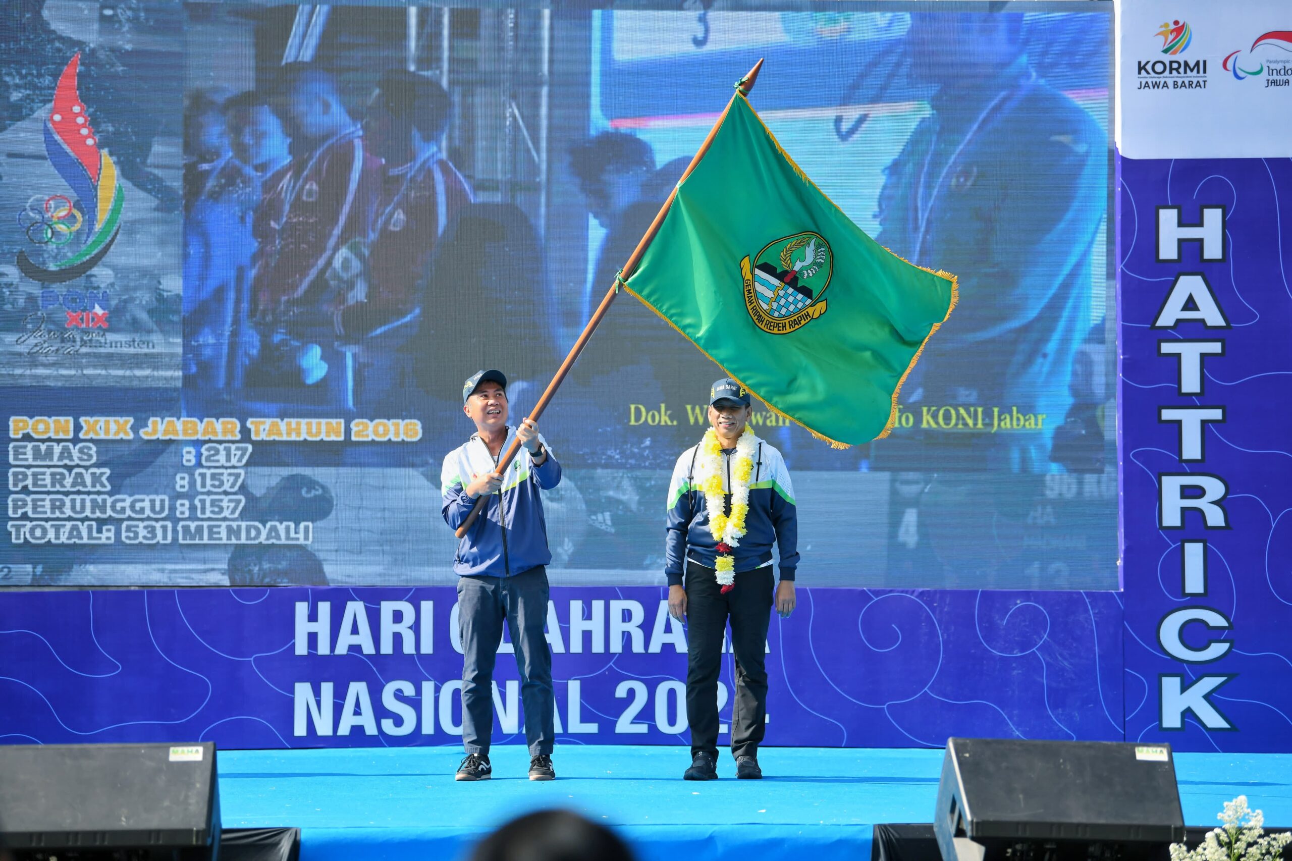 Penyambutan Kontingen PON Jabar di Gedung Sate bertepatan dengan peringatan tingkat provinsi Hari Olahraga Nasional ke – 41.