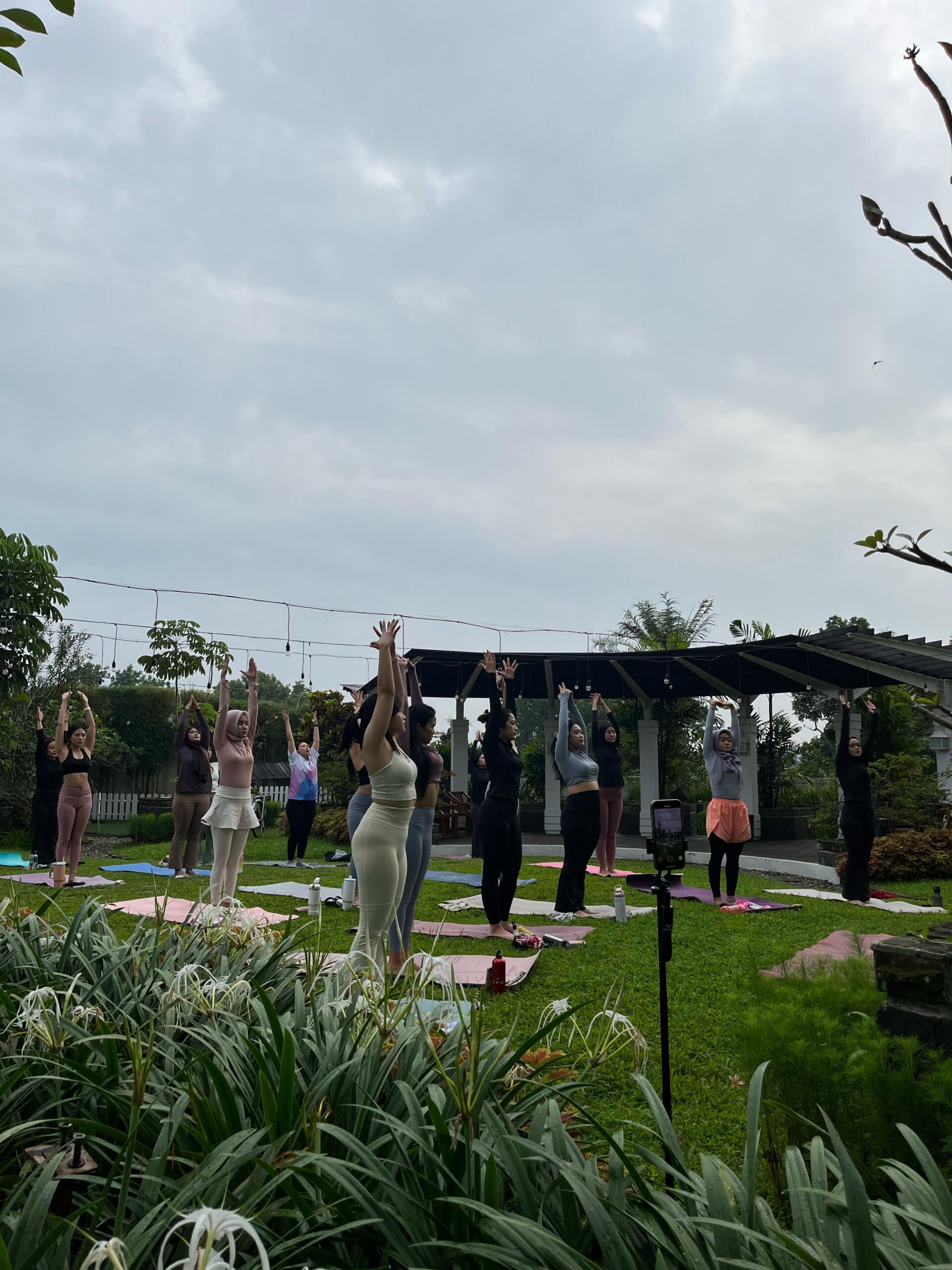 Open Your Heart: Yoga Session bersama Coach Mouza yang diselenggarakan di Swargaloka The Garden Restaurant. Sesi ini menghadirkan nuansa relaksasi dan ketenangan di tengah suasana alam terbuka yang menenangkan.