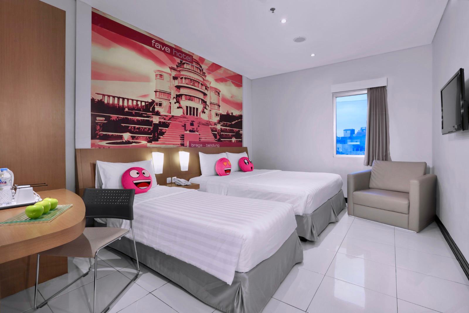 favehotel Braga menawarkan dua pilihan kamar dalam promo ini, yaitu Superior Room seharga Rp550.000 nett/malam dan Family Room seharga Rp750.000 nett/malam. Setiap paket sudah termasuk 1 malam menginap di tipe kamar pilihan (Superior/Family Room), Sarapan untuk 2 orang (Superior Room) atau 3 orang (Family Room), Paket spesial dari Wendy’s untuk 2 orang, 4 koin permainan bumper car gratis untuk anak-anak.