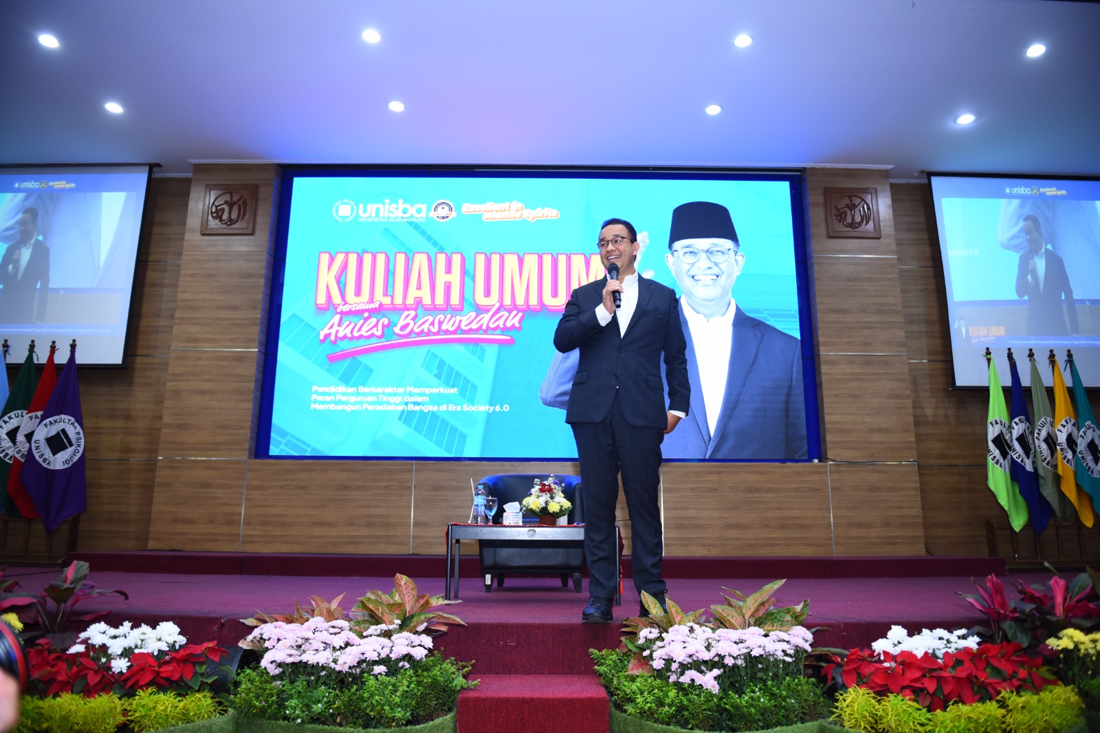 Dalam sambutannya, Rektor Unisba Prof. Edi mengungkapkan rasa syukur atas kehadiran Anies Baswedan yang disebutnya sebagai anugerah bagi Unisba. “Kedatangan beliau ke Unisba, insya Allah akan membawa pencerahan dan kebaikan bagi kita semua, khususnya dalam penguatan karakter, pengabdian kepada masyarakat, dan pengokohan wawasan kebangsaan,” ujarnya.