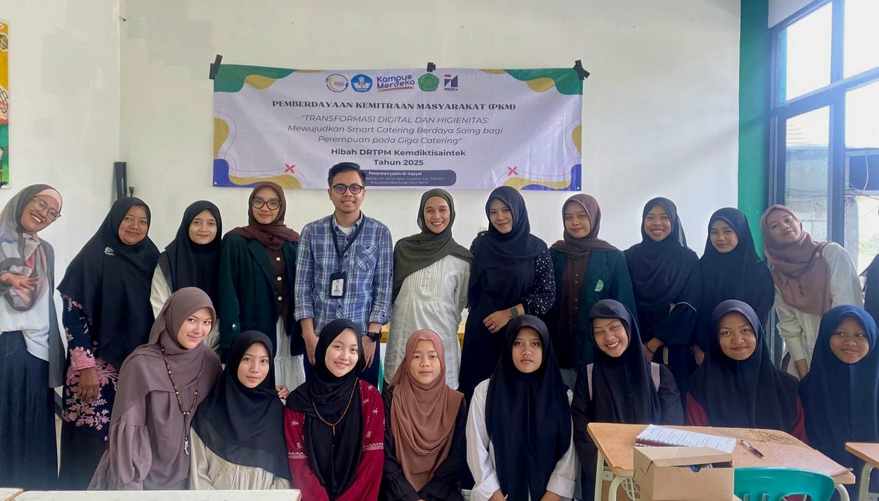 KORANPUBLIKA.CO.ID|Bandung,- Dalam rangka mendorong transformasi digital dan peningkatan higienitas pada usaha kuliner pesantren, Maisa Azizah Asmara, dosen Program Studi S1 Perdagangan Internasional, Fakultas Ekonomi, Bisnis, dan Ilmu Sosial Universitas ‘Aisyiyah (UNISA) Bandung, bekerja sama dengan Institut Digital Ekonomi (IDE) LPKIA memberikan pelatihan bagi pelaku usaha kuliner di Pesantren Al-Kasyaf, Kec. Cileunyi, Kab. Bandung, pada Juli–Agustus 2025.