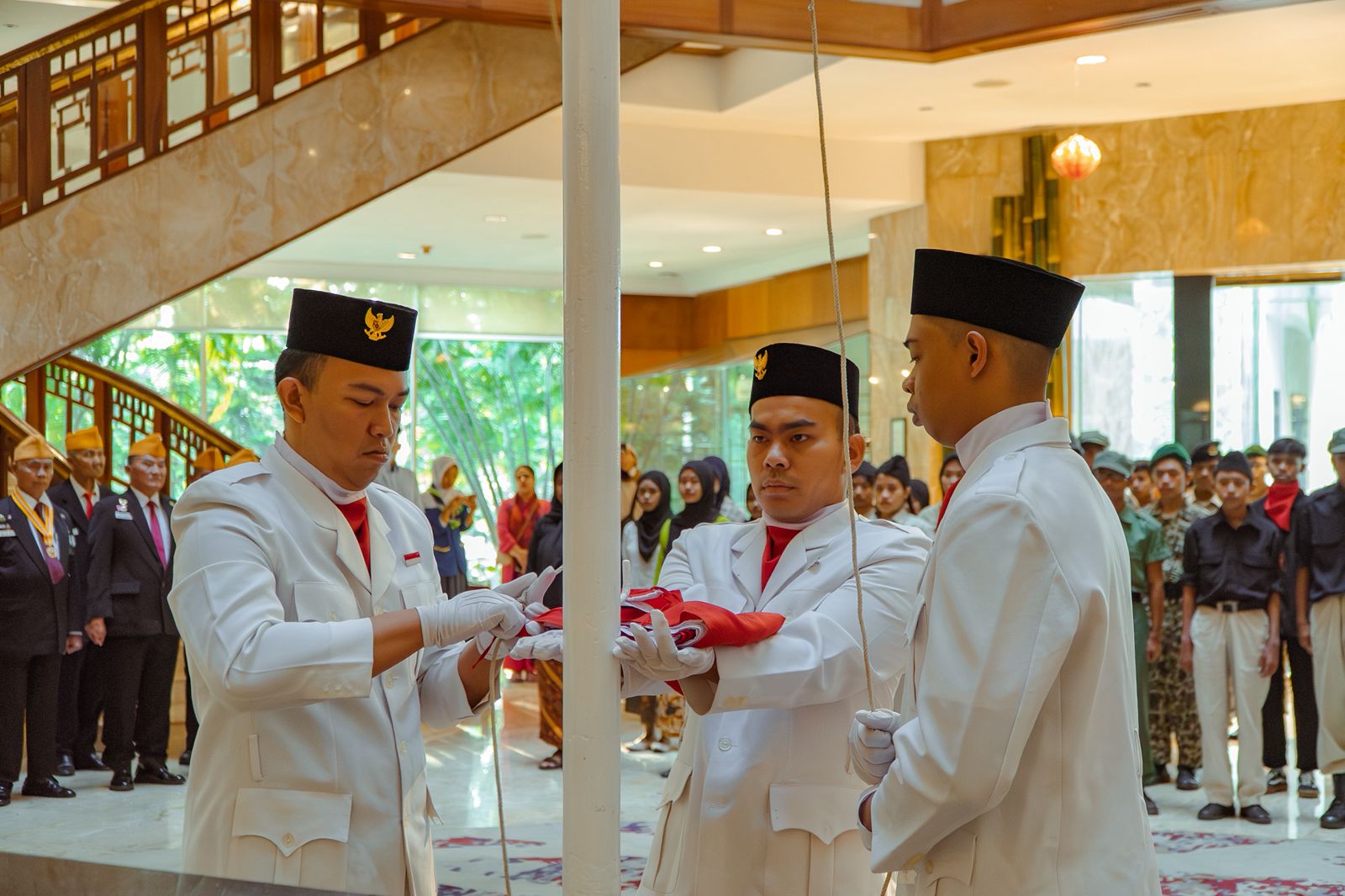 KORANPUBLIKA.CO.ID|Bandung,- Dalam rangka memperingati Hari Kemerdekaan Republik Indonesia ke-80, Aryaduta Bandung menggelar perayaan dengan cara yang berbeda dan penuh makna. Tidak hanya mengadakan upacara bendera di area lobby hotel, Aryaduta Bandung juga mengundang Legiun Veteran Republik Indonesia (LVRI) Kota Bandung untuk bersama-sama mengikuti upacara sebagai bentuk penghormatan terhadap para pejuang bangsa, Minggu(17/8/2025).