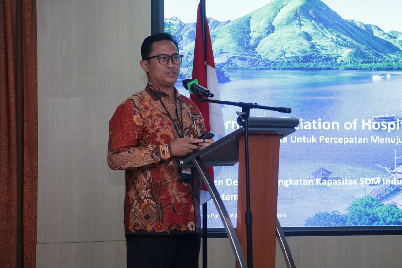 Turut hadir sebagai pembicara utama, Dr. Faisal, MM.Par., CHE, selaku Asisten Deputi Peningkatan Kapasitas SDM Industri pada Deputi Sumber Daya dan Kelembagaan Kementerian Pariwisata RI. Ia menyoroti pentingnya kolaborasi antara pemerintah dan asosiasi profesi dalam mendorong sertifikasi, pelatihan, dan inovasi SDM.