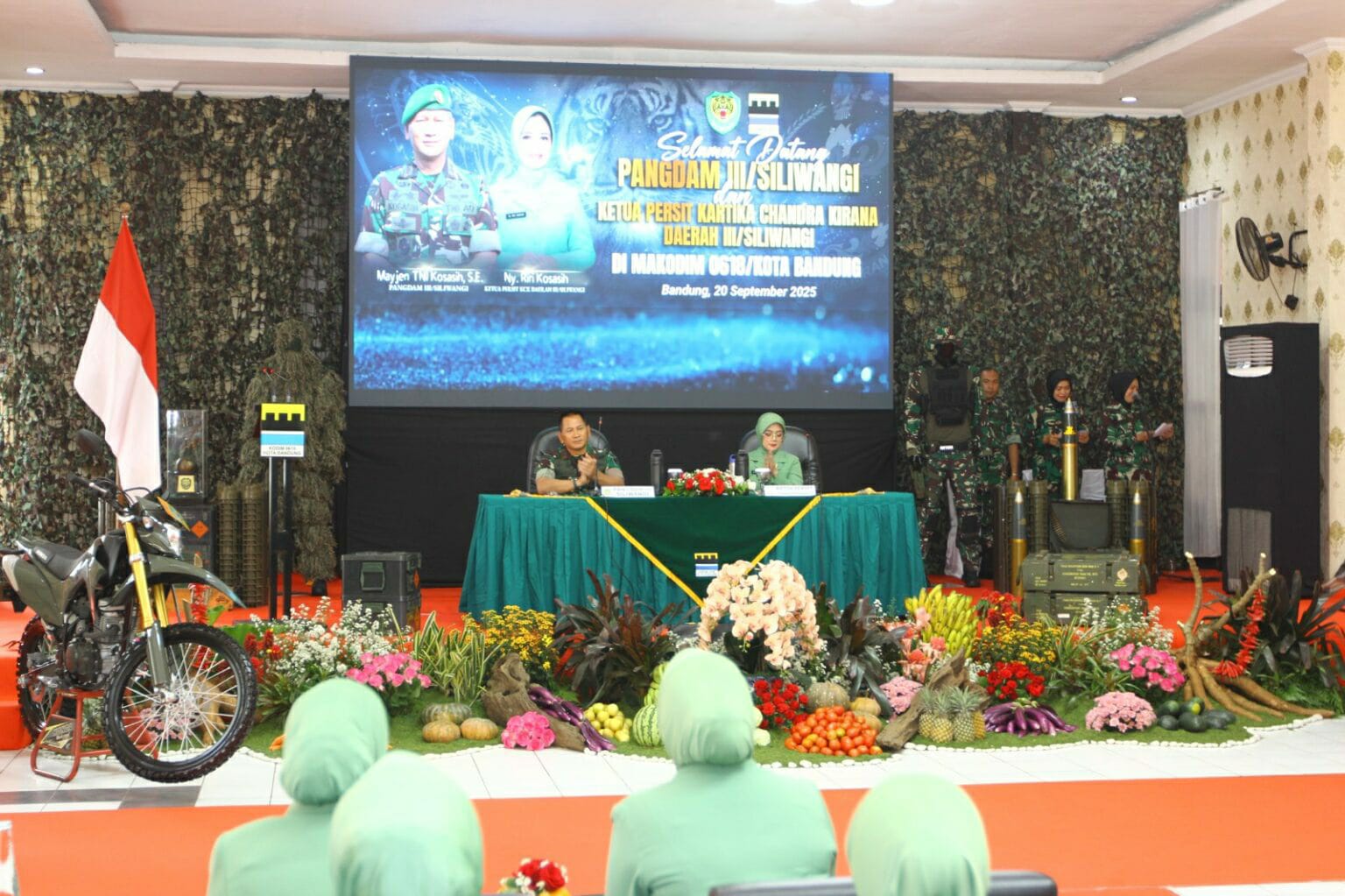 KORANPUBLIKA.CO.ID|Bandung,- Pangdam III/Siliwangi, Mayjen TNI Kosasih, S.E., didampingi oleh Ketua Persit Kartika Chandra Kirana Daerah III/Slw, Ny. Riri Kosasih, melaksanakan kunjungan kerja ke Kodim 0618/Kota Bandung Jl. Bangka No. 2, Kota Bandung. Sabtu, (20/09/2025) dan dihadiri oleh Kasdam III/Slw, Irdam III/Slw, Kapoksahli Pangdam III/Slw, serta para Asisten Kasdam III/Slw, Pa Lo TNI AL, dan TNI AU.
