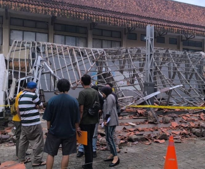 KORANPUBLIKA.CO.ID|Tasikmalaya,- Sebuah insiden mengejutkan terjadi di lingkungan Fakultas Keguruan dan Ilmu Pendidikan (FKIP) Universitas Siliwangi (Unsil) Tasikmalaya pada Minggu siang. Atap gazebo berukuran 6×10 meter tiba-tiba ambruk sekitar pukul 12.55 WIB, menimpa sejumlah mahasiswa yang sedang melakukan latihan teater di bawahnya, Minggu(16/11/2025).