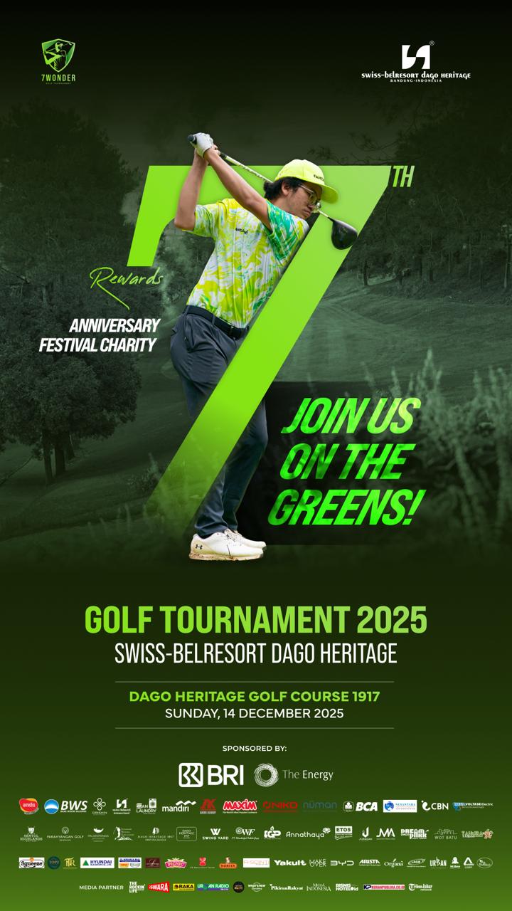 KORANPUBLIKA.CO.ID|Bandung,- Swiss-Belresort Dago Heritage Bandung dengan bangga mengumumkan 7th Annual Anniversary Festival Charity Golf Tournament 2025 dengan tema “7 Wonders” yang akan diselenggarakan pada Minggu, 14 Desember 2025 di lapangan golf bersejarah Dago Heritage Golf 1917, Kamis(11/12/2025).