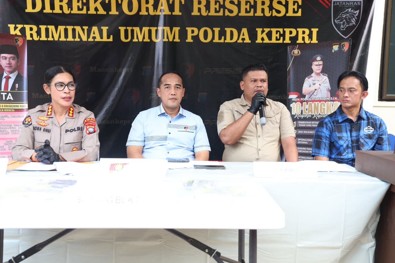 KORANPUBLIKA.CO.ID|Batam,- Polda Kepri melalui Tim Subdit 3 Jatanras Ditreskrimum Polda Kepulauan Riau berhasil mengungkap tindak pidana pencurian dengan pemberatan (curanmor) serta tindak pidana pertolongan jahat/penadahan yang terjadi di wilayah Kota Batam dan Kabupaten Karimun, Pengungkapan kasus tersebut dipimpin langsung oleh Dirreskrimum Polda Kepulauan Riau Ronni Bonic, S.H., S.I.K., M.H., serta didampingi Kabid Humas Polda Kepulauan Riau Nona Pricillia Ohei, S.I.K., S.H., M.H, Kamis(26/2/2026).
