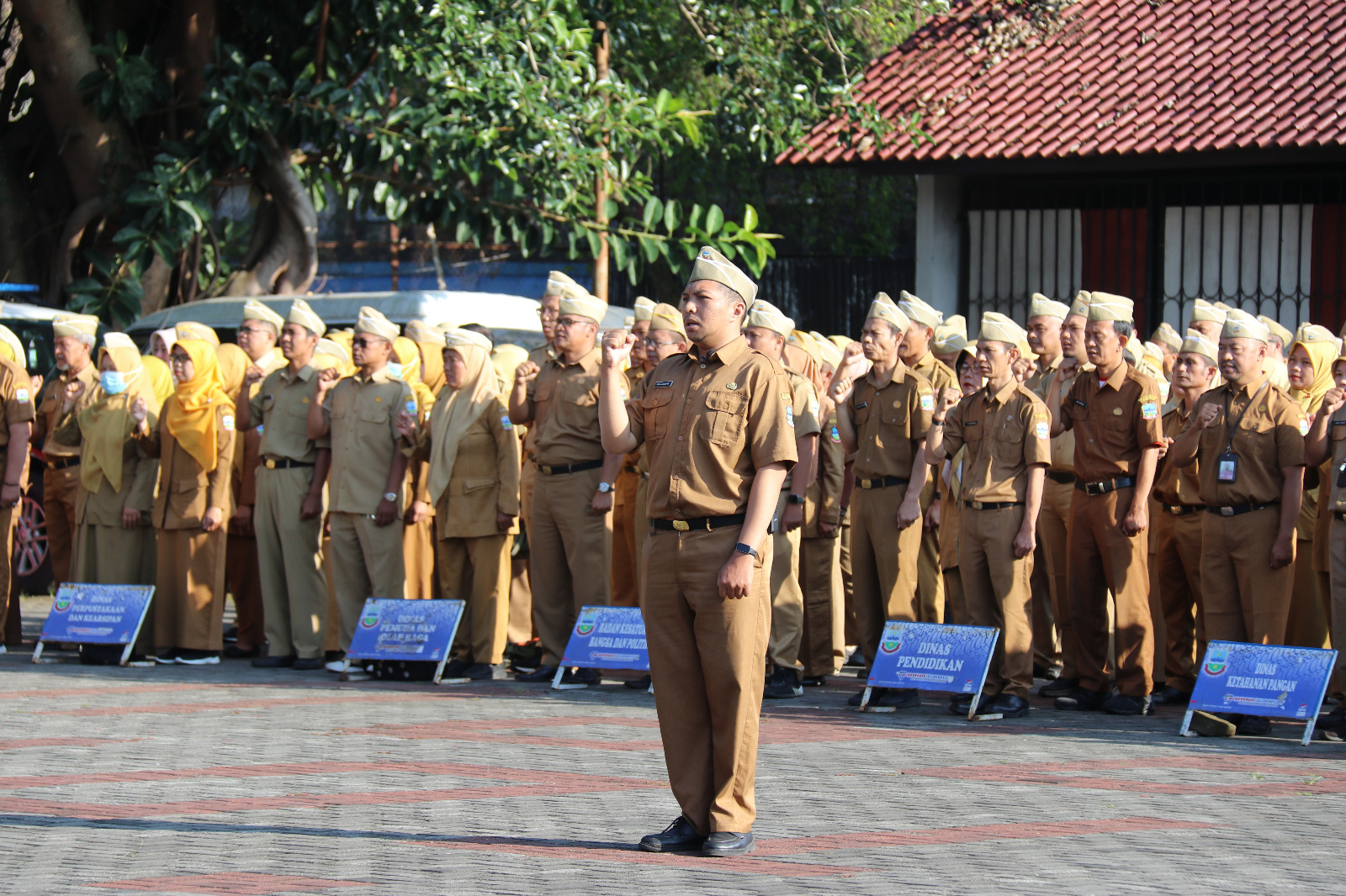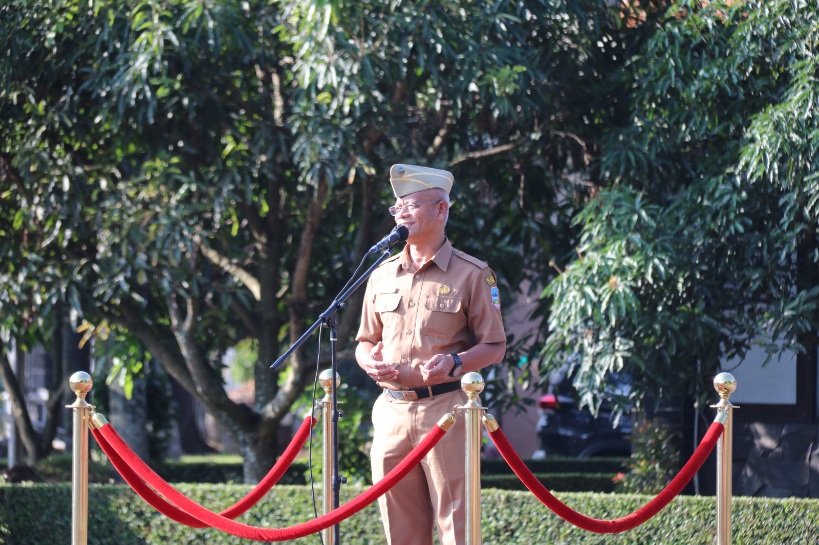 Sekretaris Daerah (Sekda) Kabupaten Garut, Nurdin Yana, memimpin Apel Gabungan di Lingkungan Pemerintah Kabupaten Garut, Jalan Pembangunan, Kecamatan Tarogong Kidul, Senin (20/4/2026).